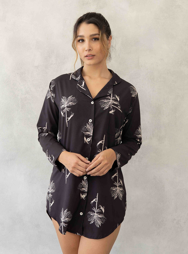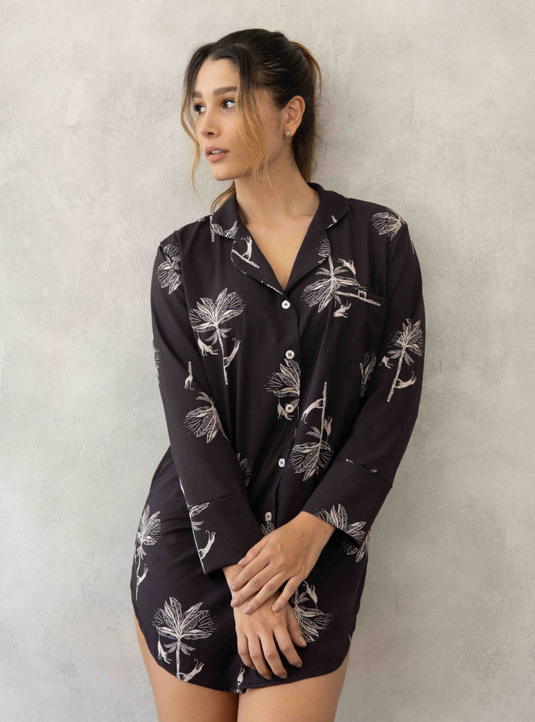Camisón manga larga con bolsillo y botones frontales.