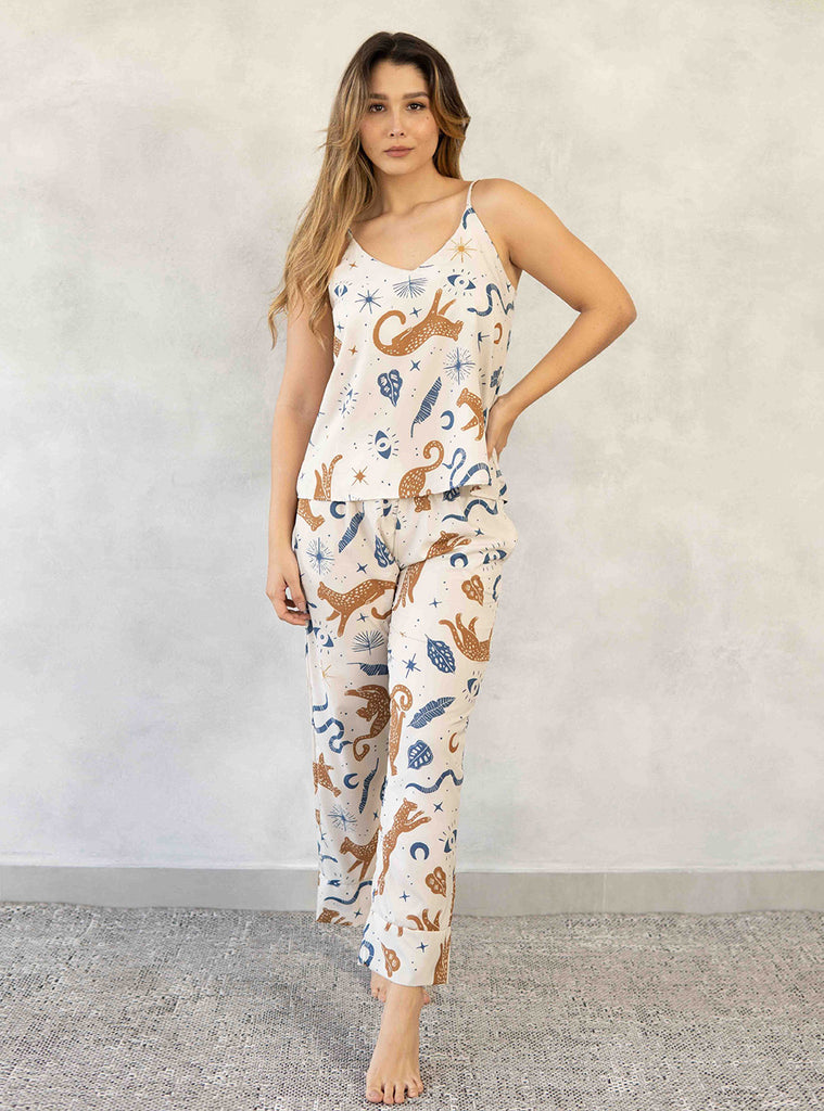 En esta colección quisimos fusionar elementos que capturan la esencia misma de nuestra tierra; las majestuosas palmeras que se alzan hacia el cielo como símbolo de resistencia, los micos y las hojas de plátano exaltan nuestra biodiversidad, el jaguar nos conecta con lo místico y lo ancestral, los pájaros con sus colores nos hablan de la exuberancia de la vida, el mar caribe nos envuelve con su cálida brisa, mientras que las imponentes montañas nos recuerdan la grandeza de nuestro paisaje.