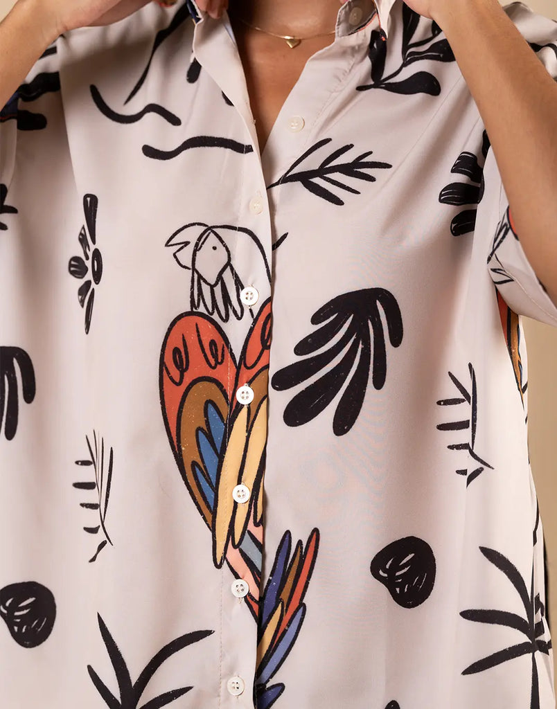 Camisa Manga ¾ con cuello clásico y botones, ligera y fluida. Su diseño suelto permite libertad de movimiento. Ideal para llevar por dentro o por fuera, abierta o cerrada. Úsala en conjunto o por separado.